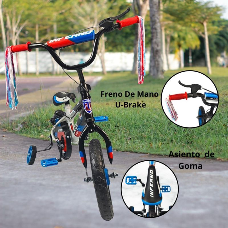 Bicicleta Infantil Niños R12 Ruedas Auxiliares Goma Unibike - Inferno