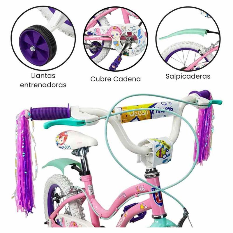 Bicicleta para Niñas R16 Llantas Aire y Entrenamiento Ocean Rosa