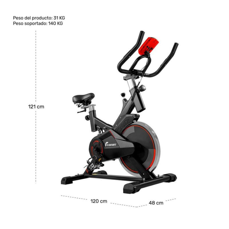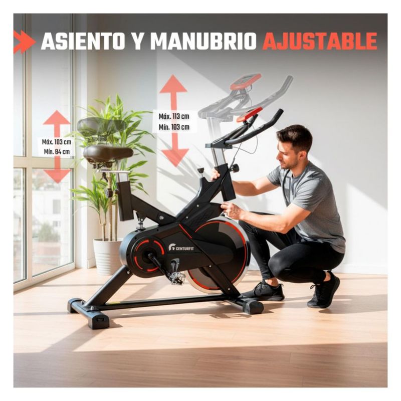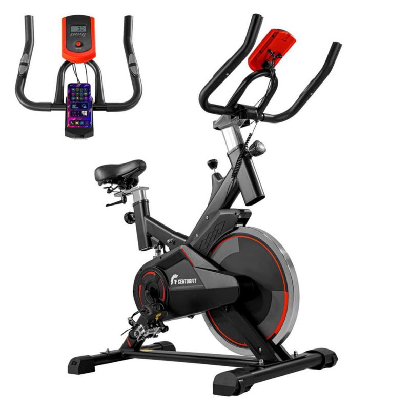 Bicicleta Spinning Centurfit Fija Estatica Fitness con Monitor Cardiaco Resistente Ajustable Volante Rueda de Inercia Entrenamiento en Casa