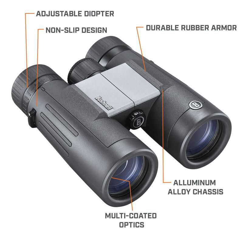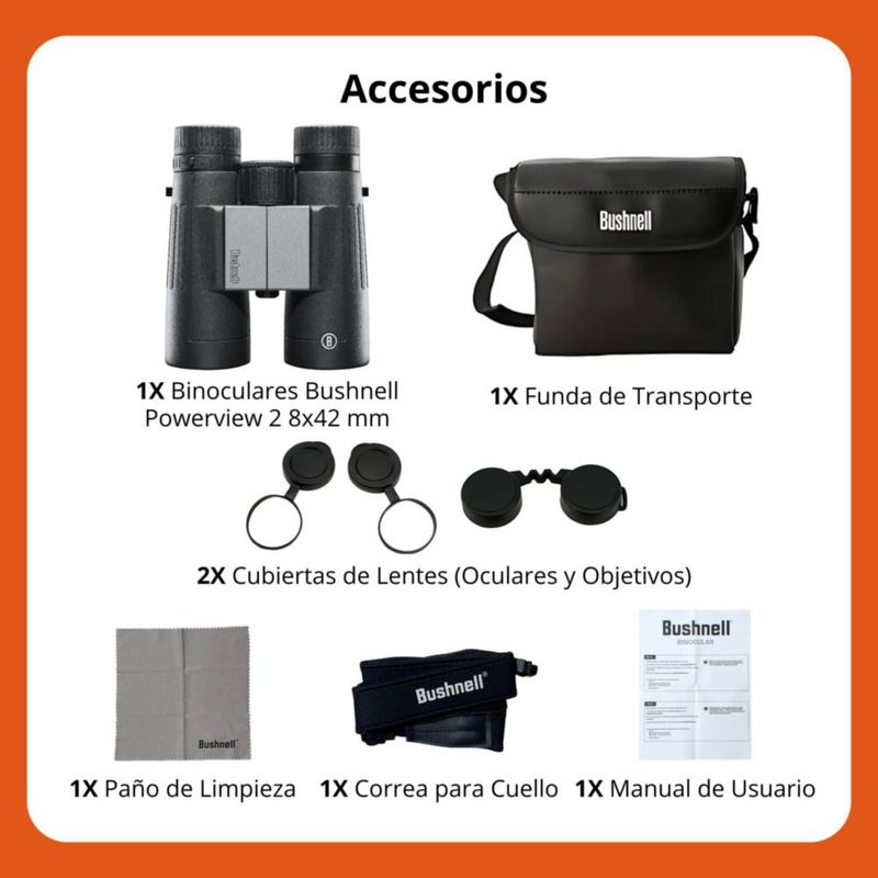 Binoculares Bushnell Powerview 2 8x42 mm Roof Compactos Negro, enfoque manual, óptica fully multicoated y chasis metálico