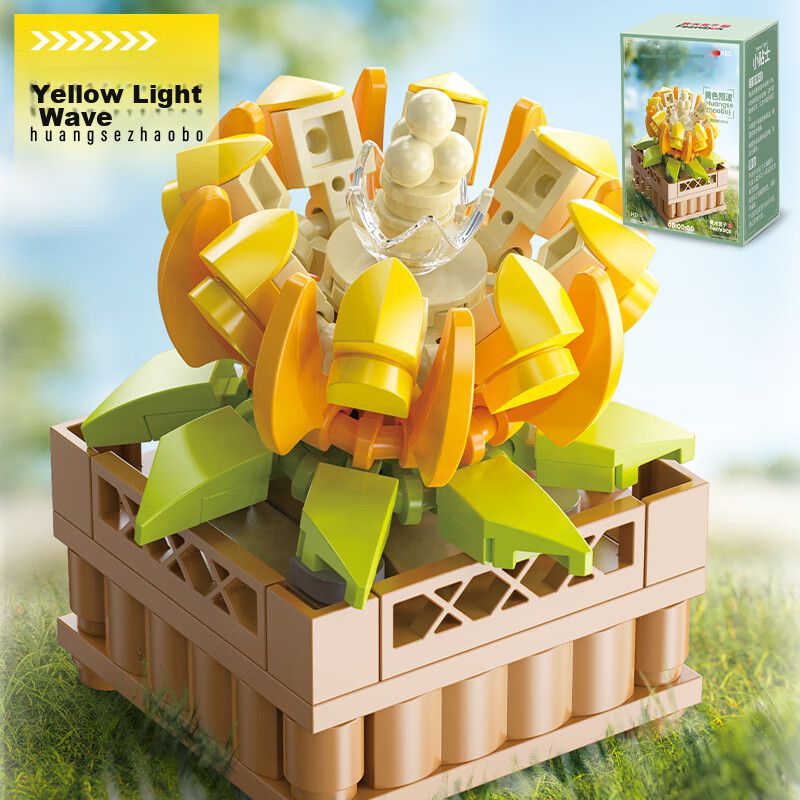 Bloques de construcción FEIMI S2284 de plástico en diseño de suculenta, color amarillo