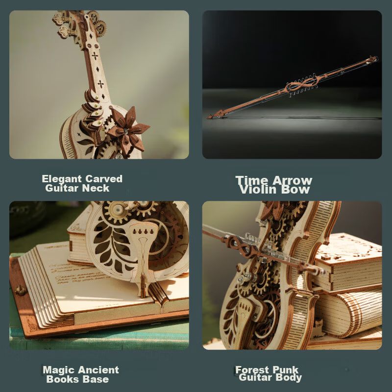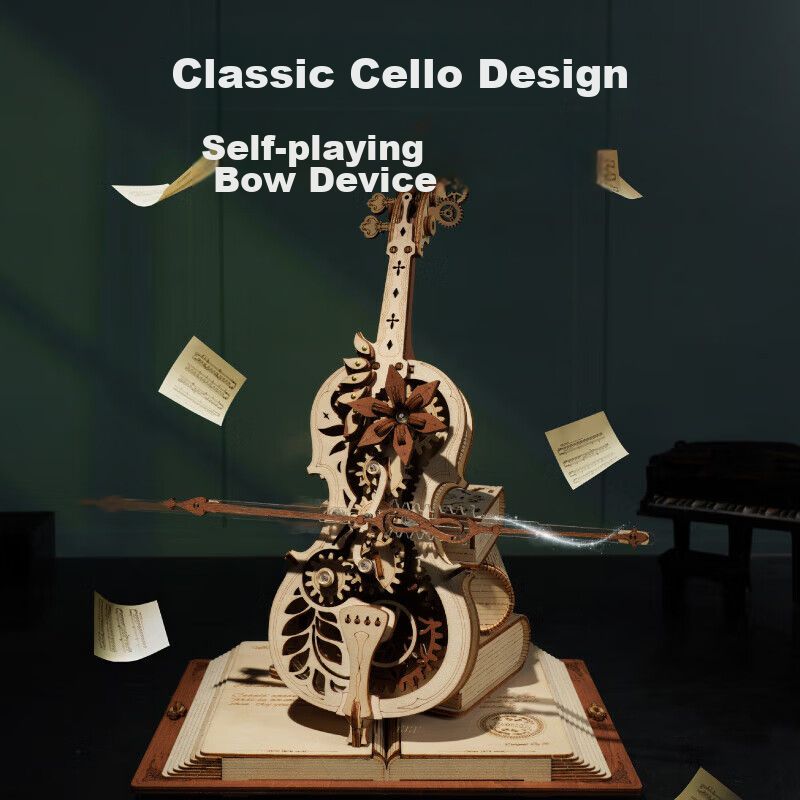 Bloques de construcción RU WU RU KE de madera para armar, caja musical violín