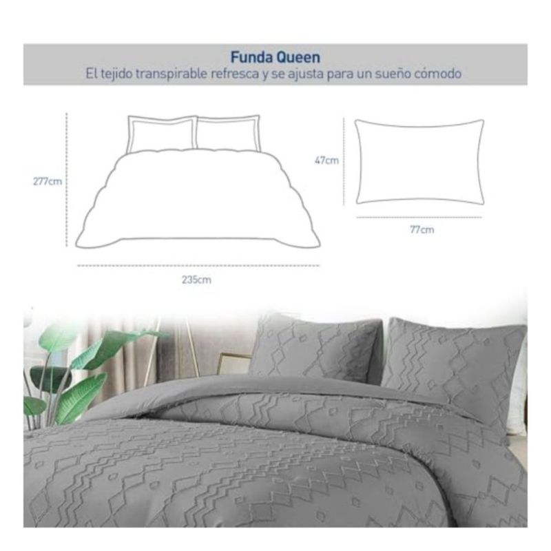 HogarBlancosEdredonesBluelander Funda Duvet Queen 226x229 cm, Microfibra, Líneas Gris