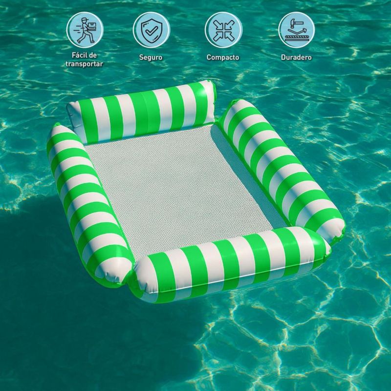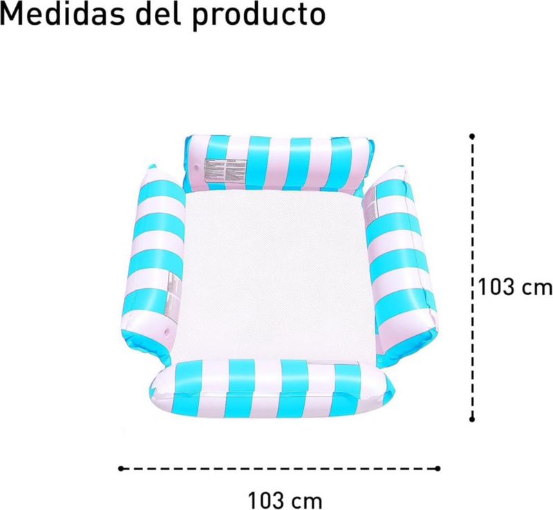 Bebés y juguetesJuguetesInflablesBluelander Set de 2 Hamacas Inflables para Alberca 103x103 cm, PVC con Malla de Nailon, Soporta hasta 100 kg, Incluye Bomba de Aire