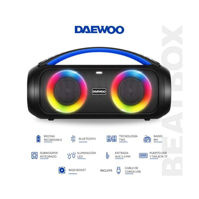 ElectrónicaAudio y equipos de sonidoBocinasBocina Bluetooth 3x2 Pulgadas Con Subwoofer Daewoo Tws Radio Fm Beatbox Dw-222