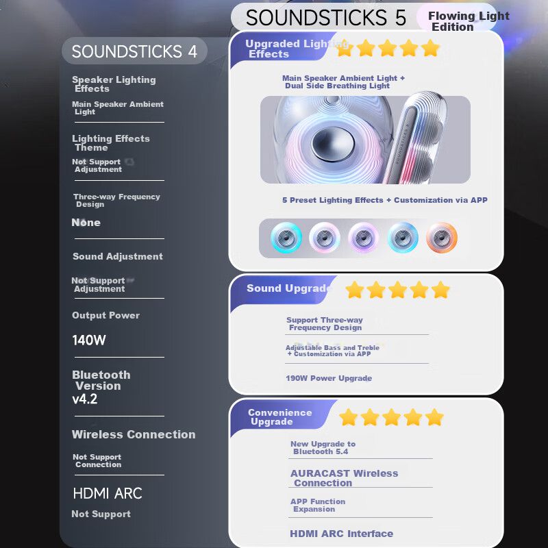 ElectrónicaAudio y equipos de sonidoBocinasBocina Harman/Kardon Soundsticks 5 Bluetooth Luz Fluida