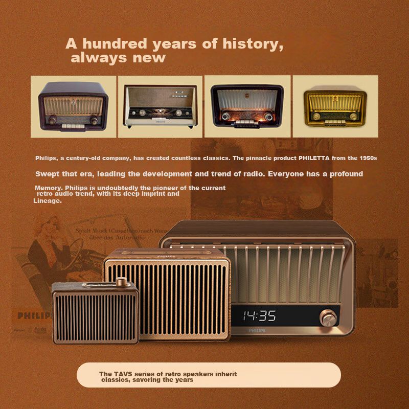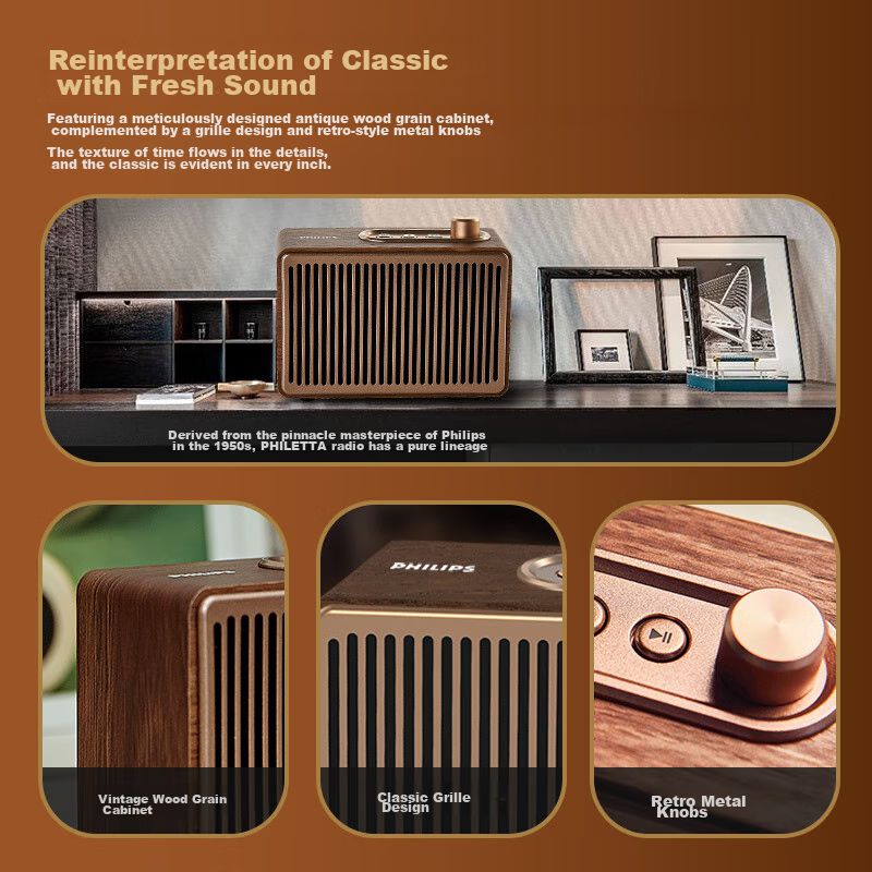 Bocina Philips Tavs300 Bluetooth Retro Madera Nogal