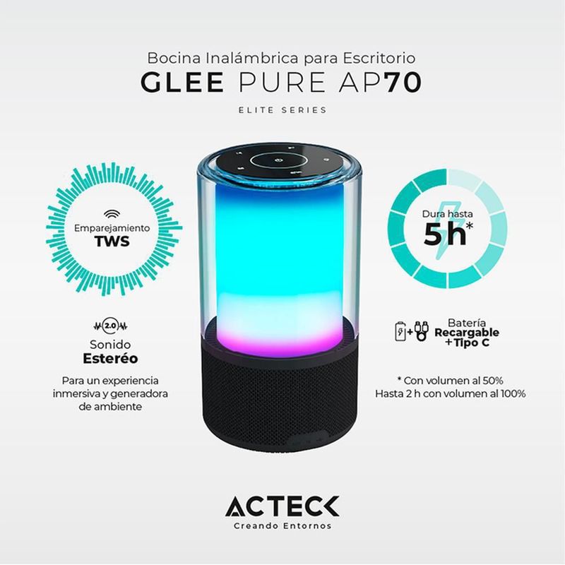 Bocina portatil acteck glee pure ap70 inalambrica luz led tws negro ac-936385