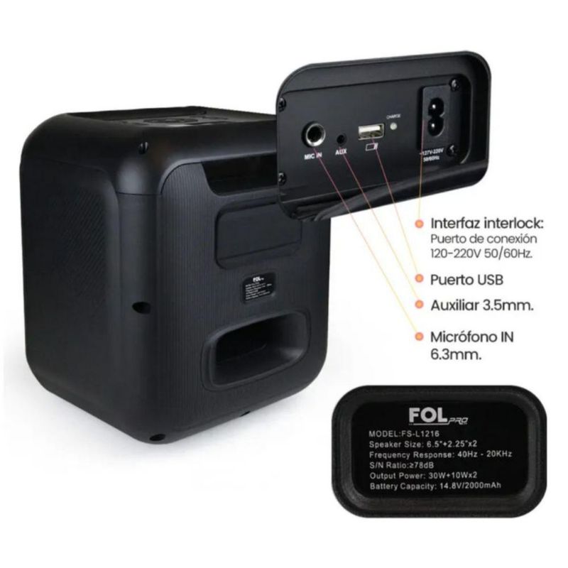 ElectrónicaAudio y equipos de sonidoBocinasBocina portátil BT FOL Pro 6.5" Karaoke TWS USB con micrófono FS-L1216M
