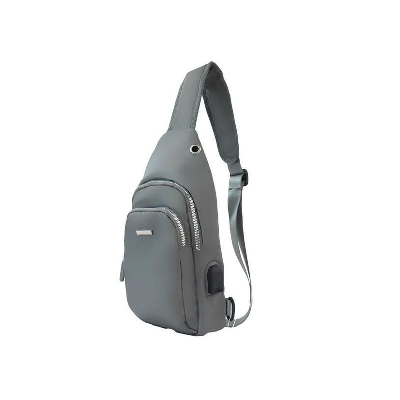 Bolsa Bandolera Unisex Gris Con Puerto USB