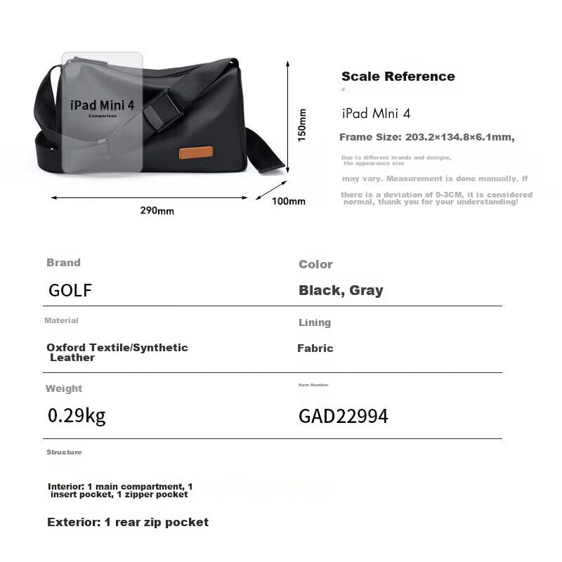 Moda y accesoriosBolsas y CarterasBolsas para HombreBolsa Crossbody GOLF Serie Funcional Pionera Negro Para Hombre