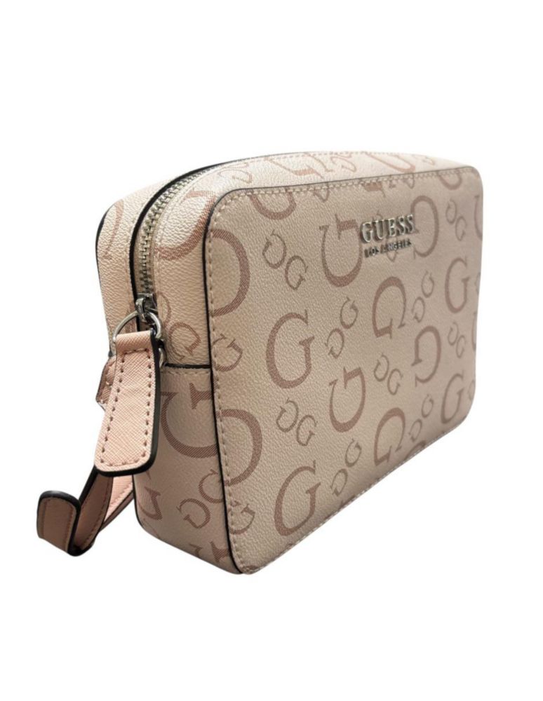 Bolsa Crossbody Guess color rosa claro con letras resaltadas, logo centrado