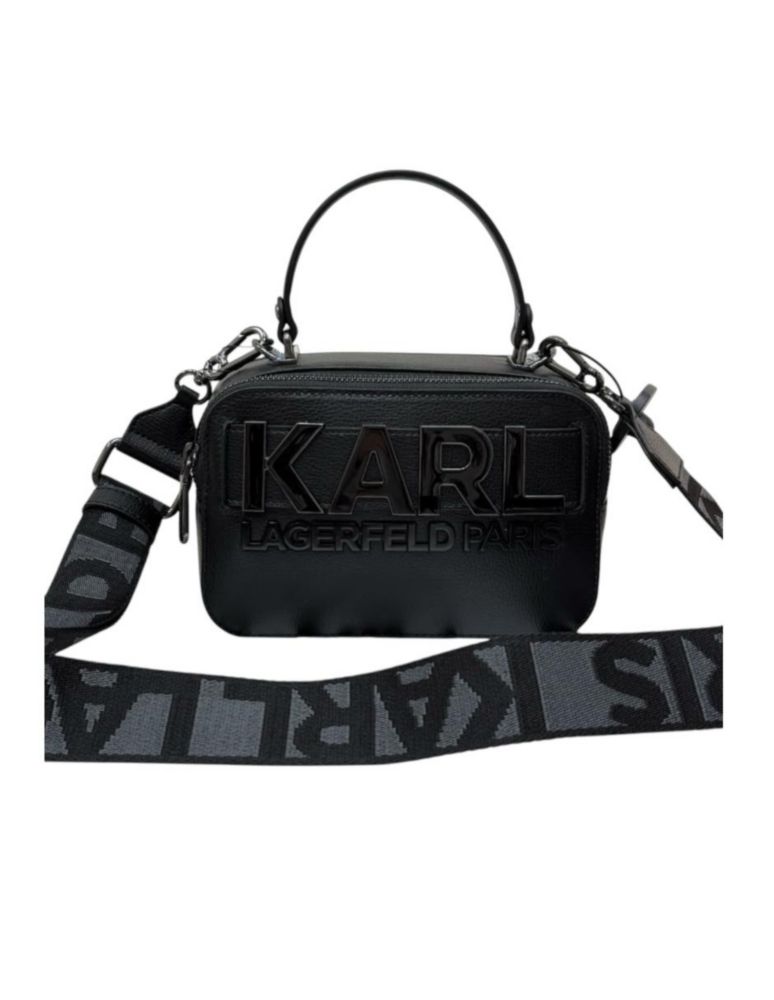 Moda y accesoriosBolsas y CarterasBolsasBolsa Crossbody Karl Lagerfeld Paris de piel color negro con asa desmontable y ajustable. Mide 20 cm de ancho por 15 cm de alto.