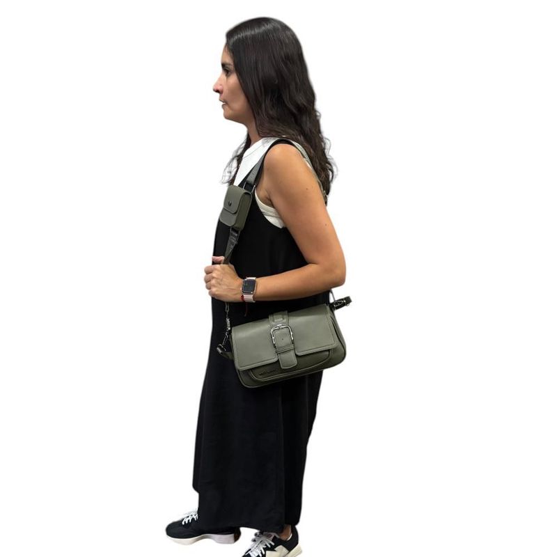 Moda y accesoriosBolsas y CarterasBolsasBolsa Crossbody Steve Madden Charle color verde con doble asa desmontable y ajustable, cierre de broche con logo en la parte inferior izquierda