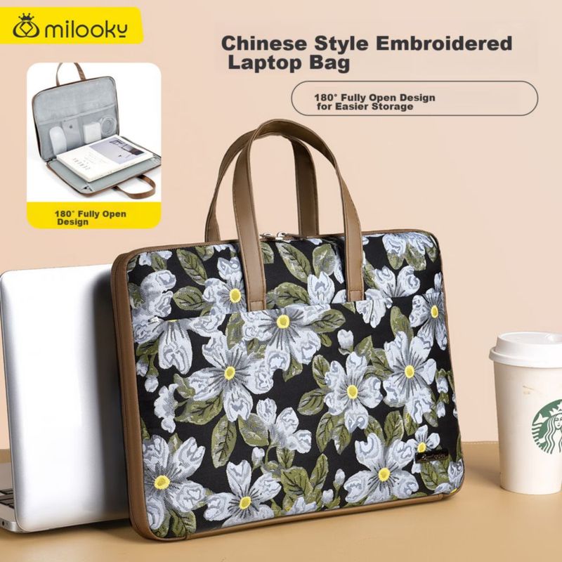 Bolsa para laptop Milooky bordada azul de tejido Oxford para mujer