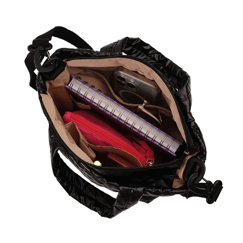 Bolsa tipo tote luckyly múlticompartimentos repelente al agua luxe negro