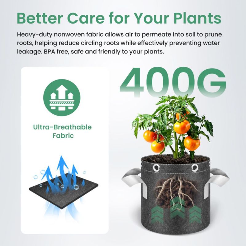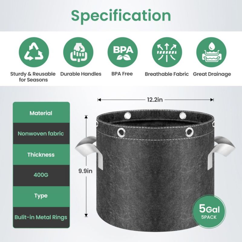 Bolsas para cultivo de plantas InfiniPower paquete de 5 unidades 19 litros con anillos y asas
