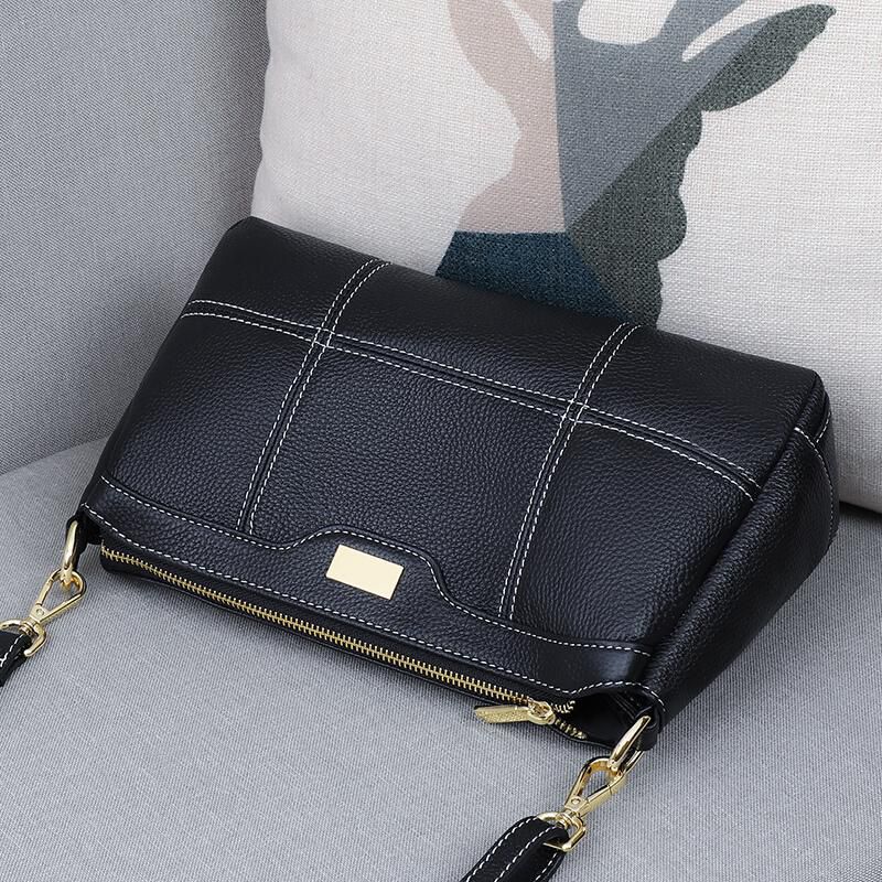 Bolso bandolera Viney de cuero de vaca con gran capacidad negro para mujer