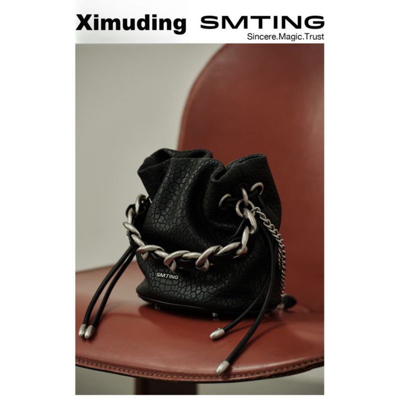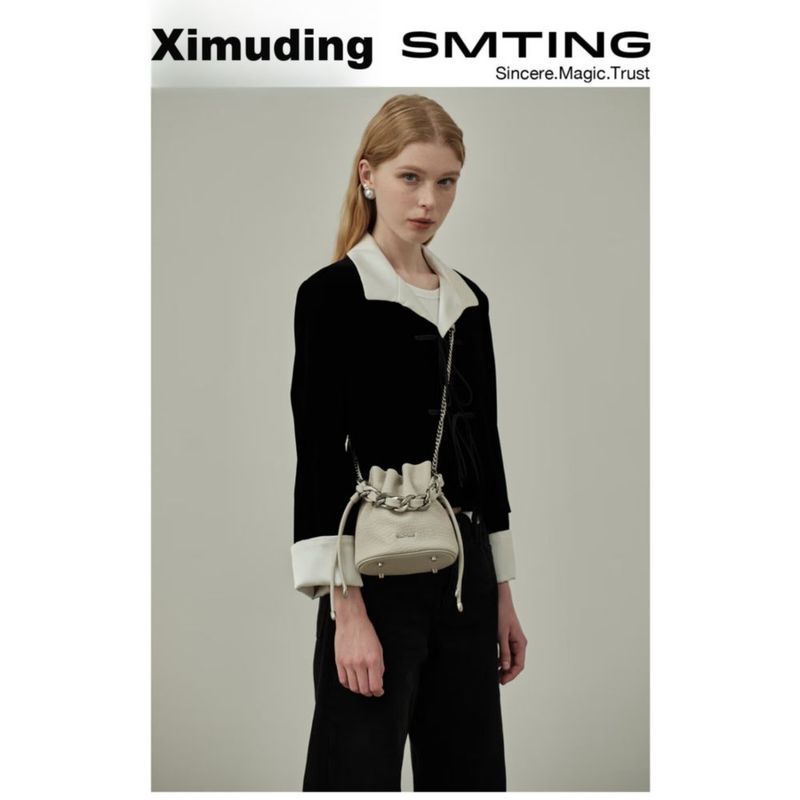 Moda y accesoriosBolsas y CarterasBolsasBolso cubo de cuero SMTING con cadena gris y beige para mujer