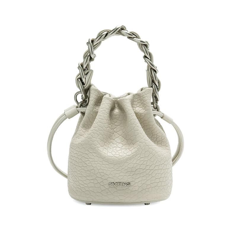 Bolso cubo de cuero SMTING con cadena gris y beige para mujer
