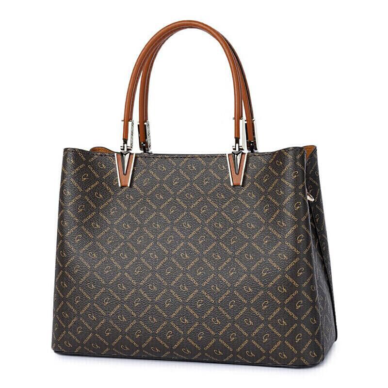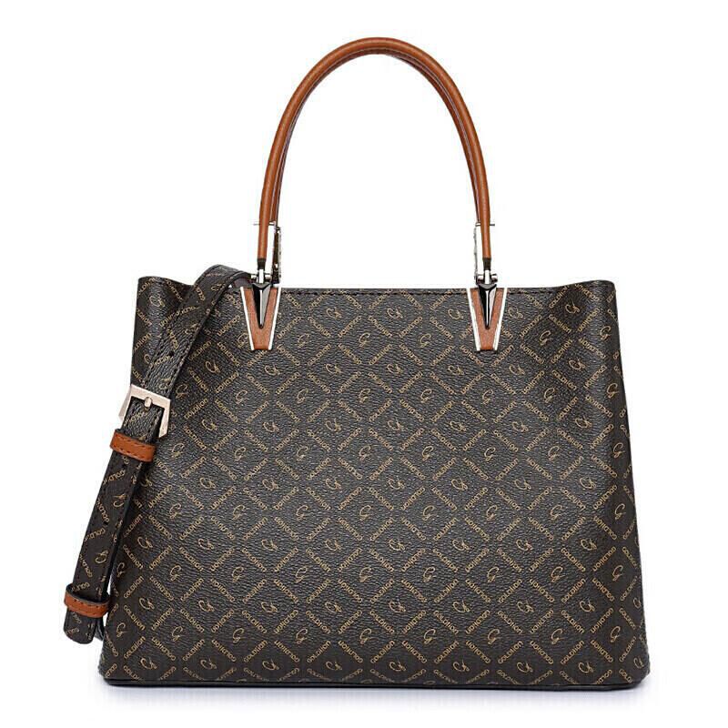 Bolso de mano Goldlion PVC impreso grande amarillo y marrón para mujer