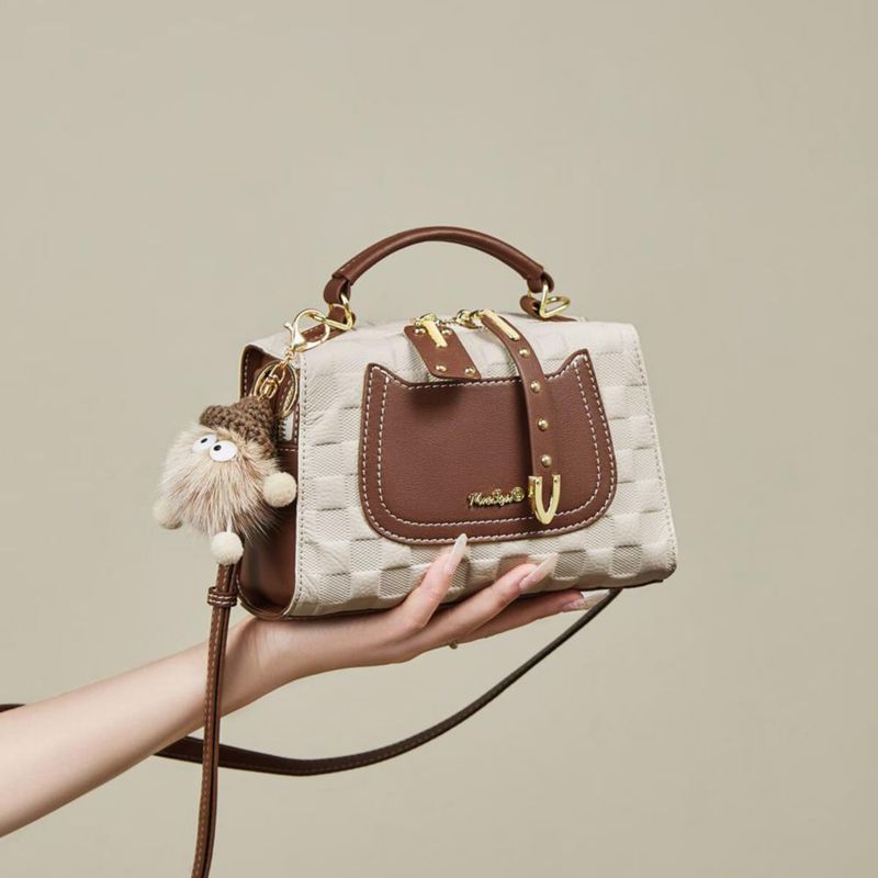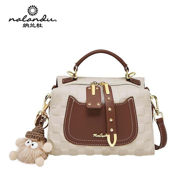 Moda y accesoriosBolsas y CarterasBolsasBolso Nalandu de cuero beige con marrón para mujer
