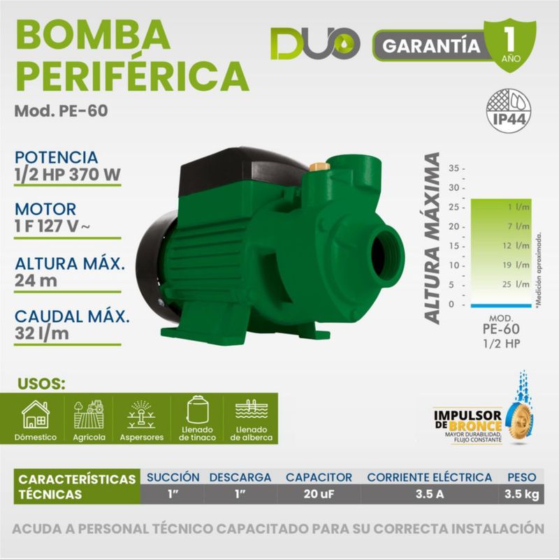 Bomba Periferica Duo 1/2 Hp Verde PE60 IGOTO