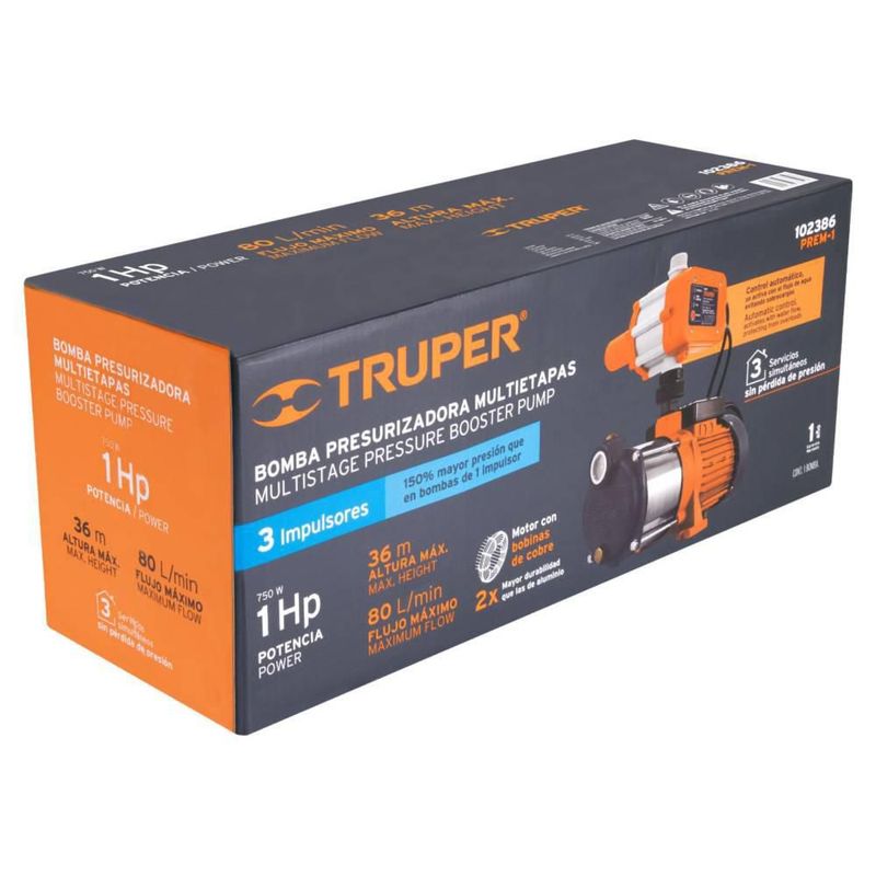 Bomba presurizadora Truper multietapas 1 HP con control PREM1 naranja
