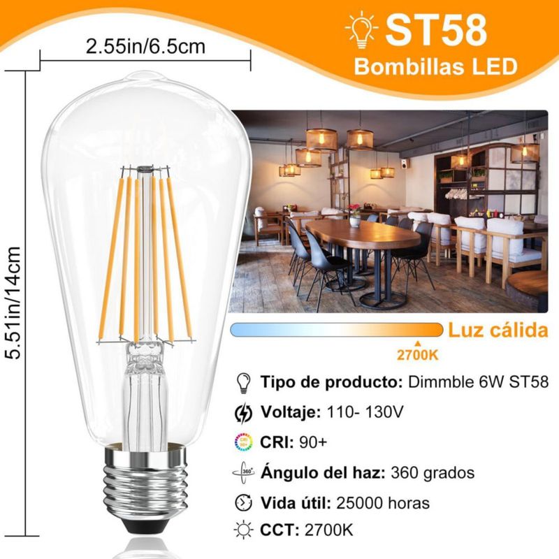 Bombilla LED Edison 6W, Foco LED Decorat