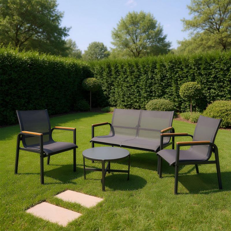 Bossa Sala para Jardín Exterior Terraza o Patio| 2 Sillones Individuales y Sofa Doble| 1 Mesa de Centro Resistente al Agua Incluida Altair
