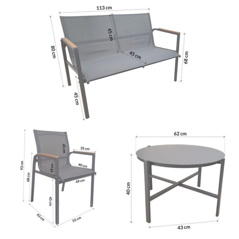 HogarPatio y JardínSillas, Sillones, Bancos y SofásBossa Sala para Jardín Exterior Terraza o Patio| 2 Sillones Individuales y Sofa Doble| 1 Mesa de Centro Resistente al Agua Incluida Altair