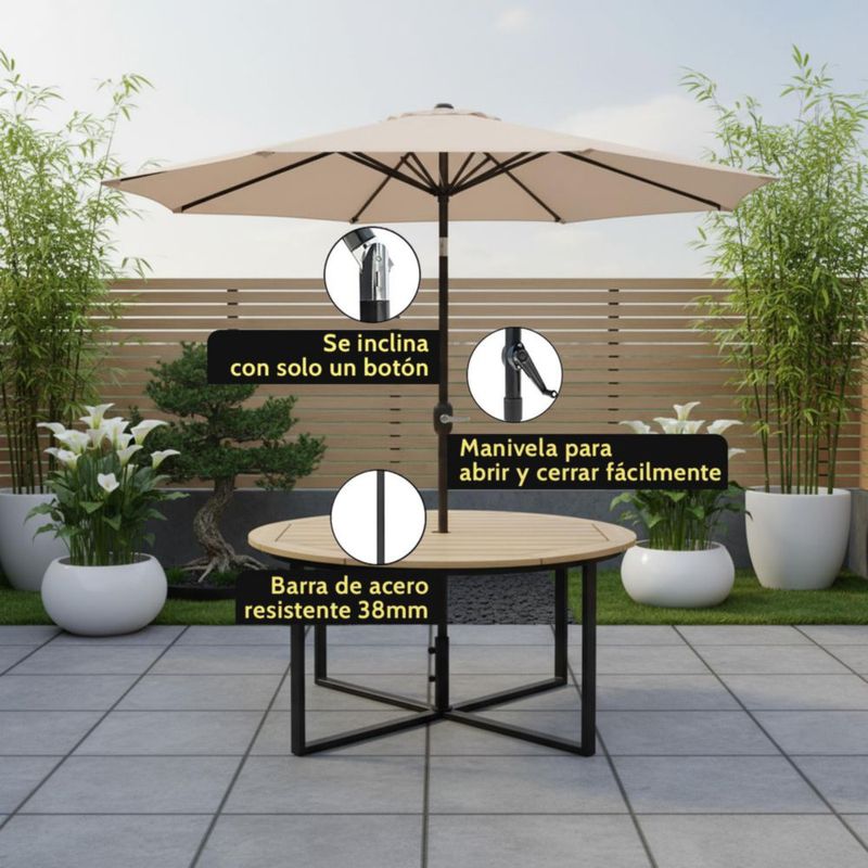 Bossa Sombrilla Grande para Jardín 2.5 Metros con Angulo de Inclinación Acero Reforzado y Manivela Catania