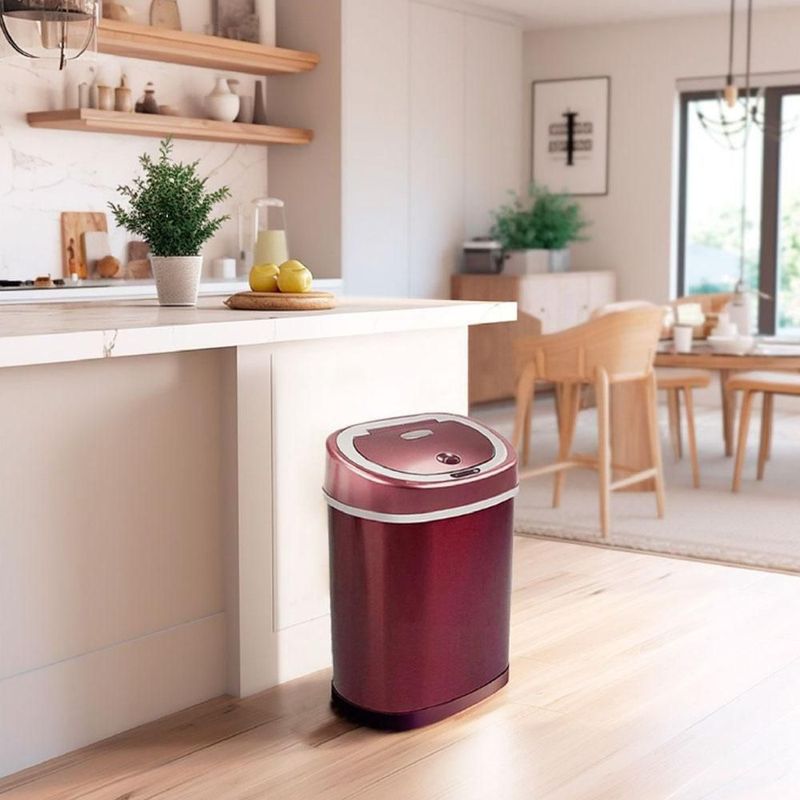 HogarCocinaBotes de BasuraBote de Basura Inteligente Para Cocina, Baño, Oficina 15 Litros, Acero Inoxidable. Con Tapa Automática de Sensor de Movimiento. Color Burgundi