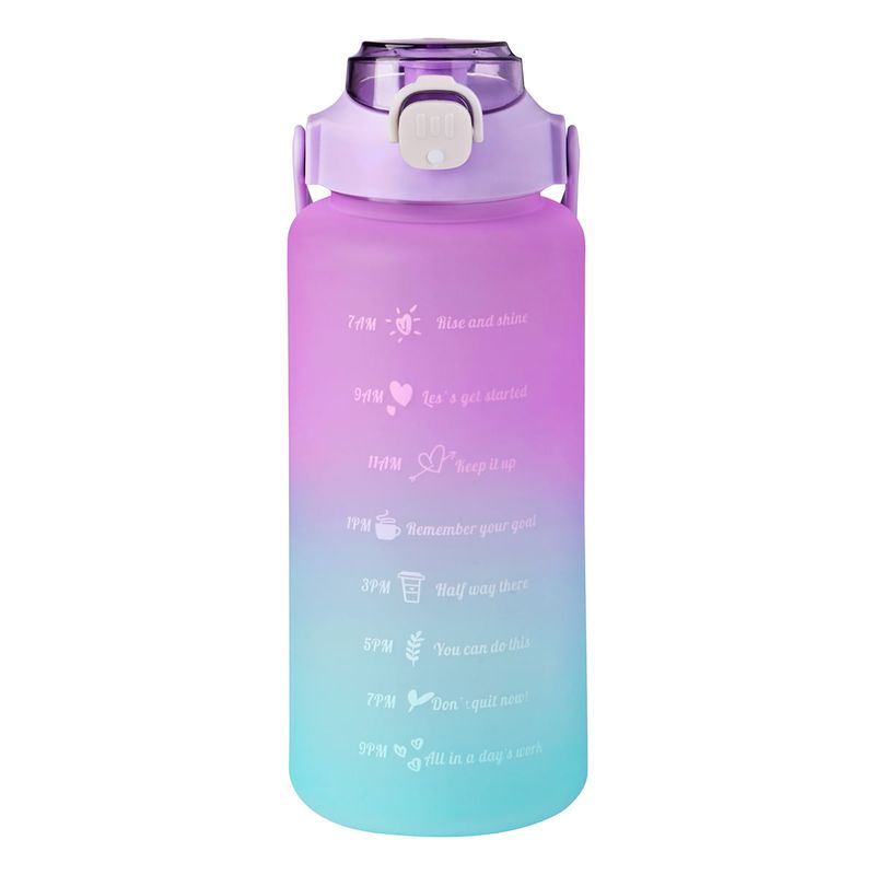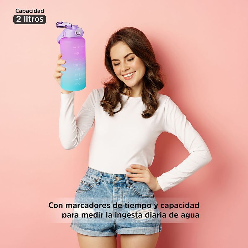 Botella Motivacional Deportiva Capacidad 2L Color Morado y Azul.