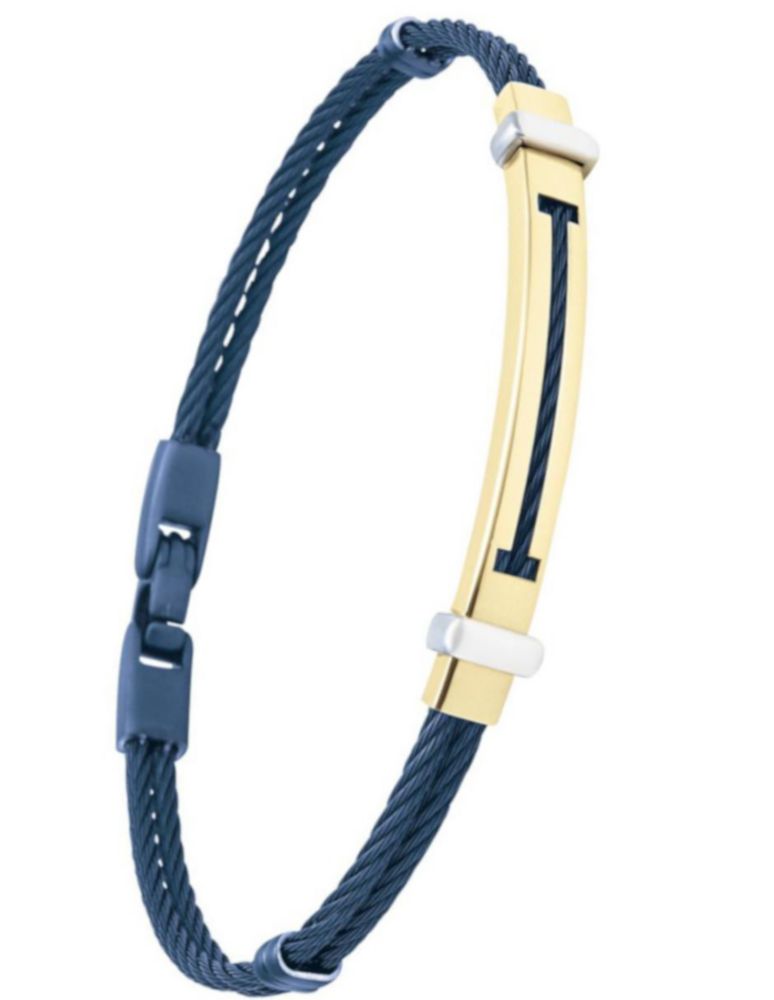 Brazalete Acero Color Azul y oro 14k CRISTAL JOYAS ZIZES2211-4T2