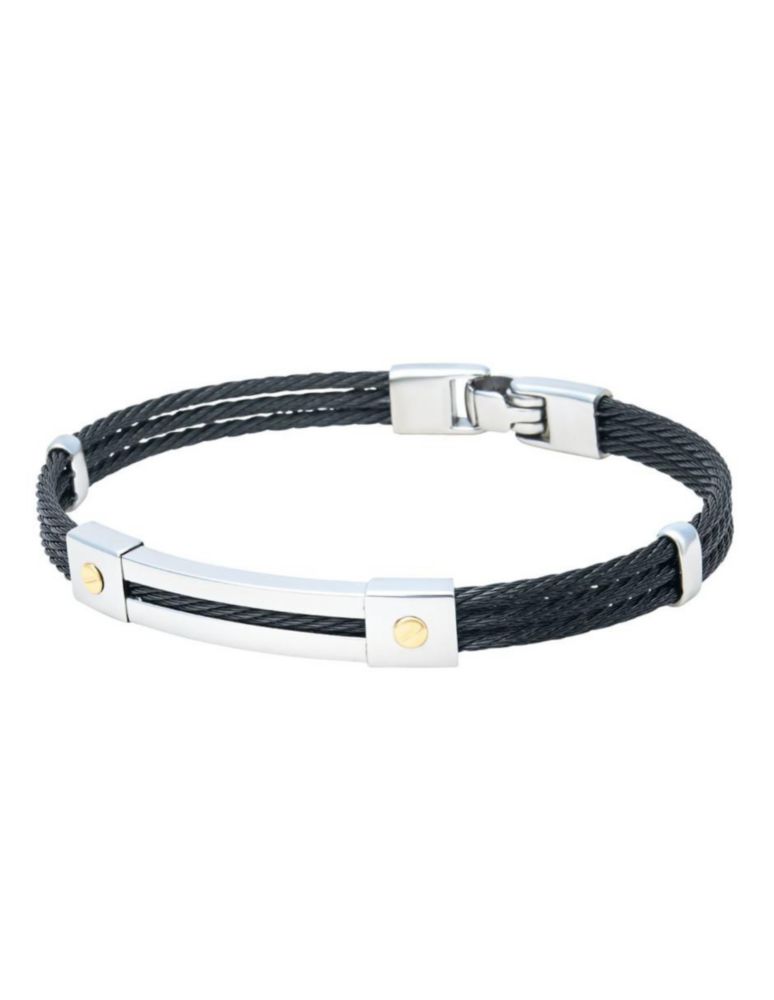 Brazalete Acero Color Negro Con Oro 14k CRISTAL JOYAS ZIZES3012-2T2