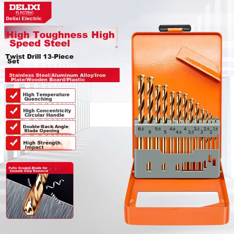 HerramientasAccesorios Para Herramientas EléctricasBrocasBroca helicoidal DELIXI DLX-031-13 Acero rápido M2 juego 13 piezas acero inoxidable acero aleado hierro