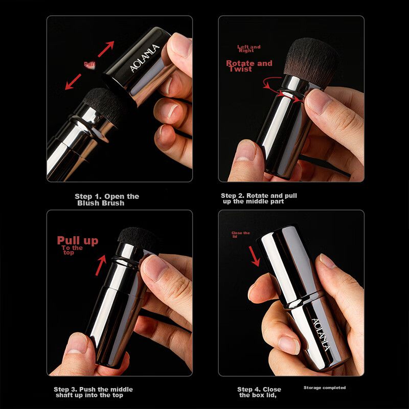 Brocha De Maquillaje Aolanla Portátil Extensible Gris Plateado