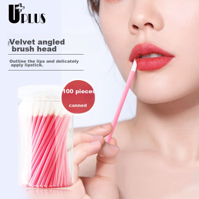 Brocha De Maquillaje Uplus Desechable Para Labios Rosa 100 Piezas