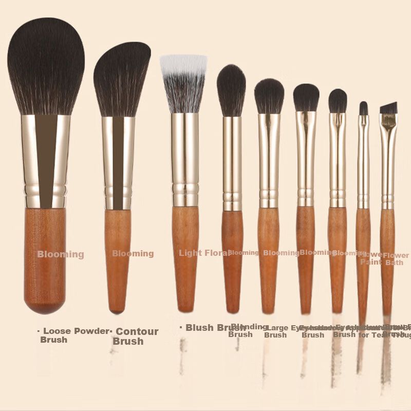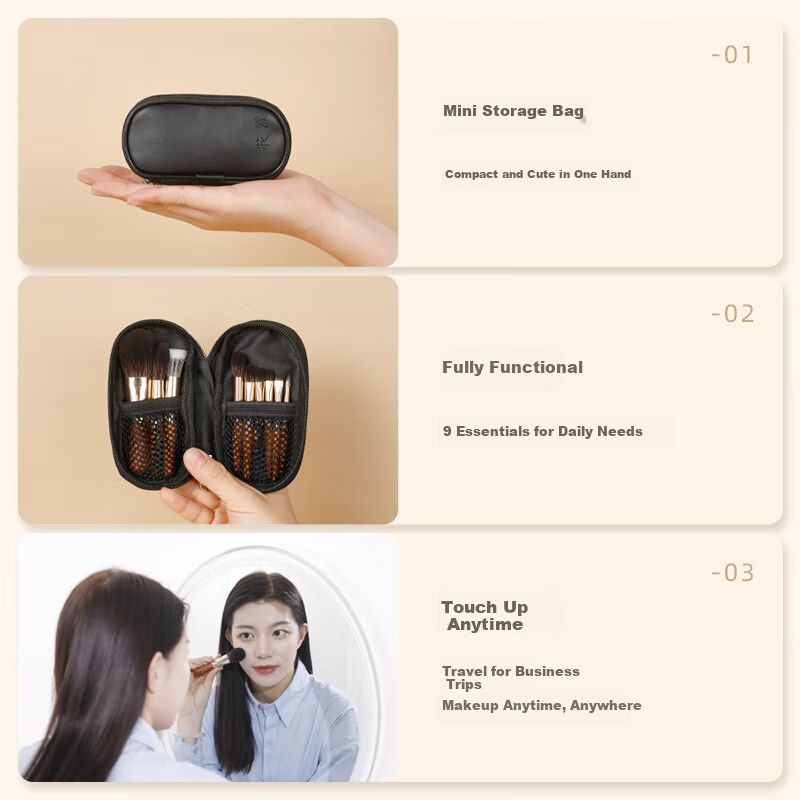 Brochas De Maquillaje Huayang Mini 9 Piezas Para Sombra De Ojos Con Estuche Portátil