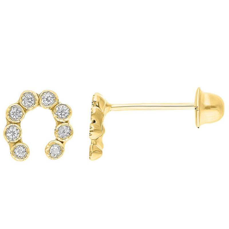 Broquel herradura circonias blancas Oro 10K Horoz V12 E457