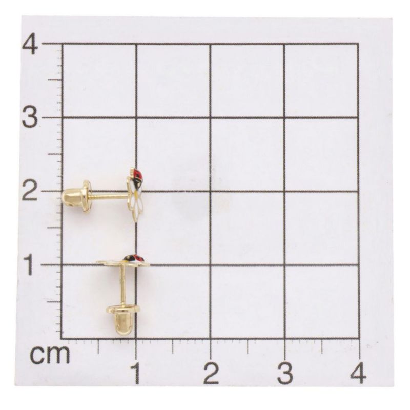 Broqueles de Flor en Oro 10K con Mariquita PRB-91-A
