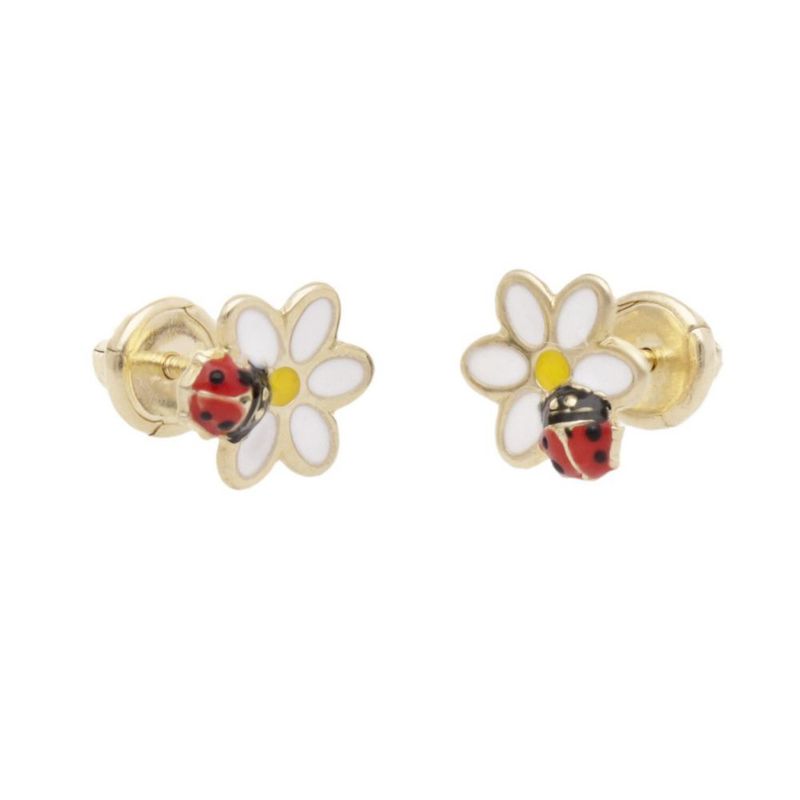 Moda y accesoriosJoyeríaAretesBroqueles de Flor en Oro 10K con Mariquita PRB-91-A
