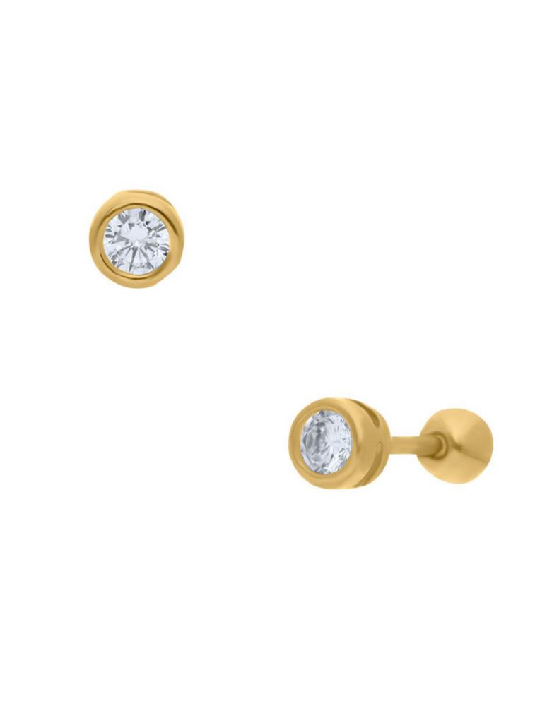 Moda y accesoriosJoyeríaAretesBroqueles de Oro Amarillo 14K con Zirconia