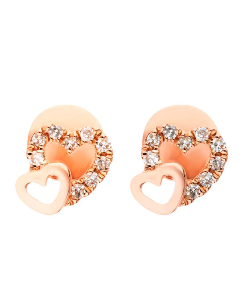 Broqueles de Oro Rosa 14 K con 5 Pts de Diamante