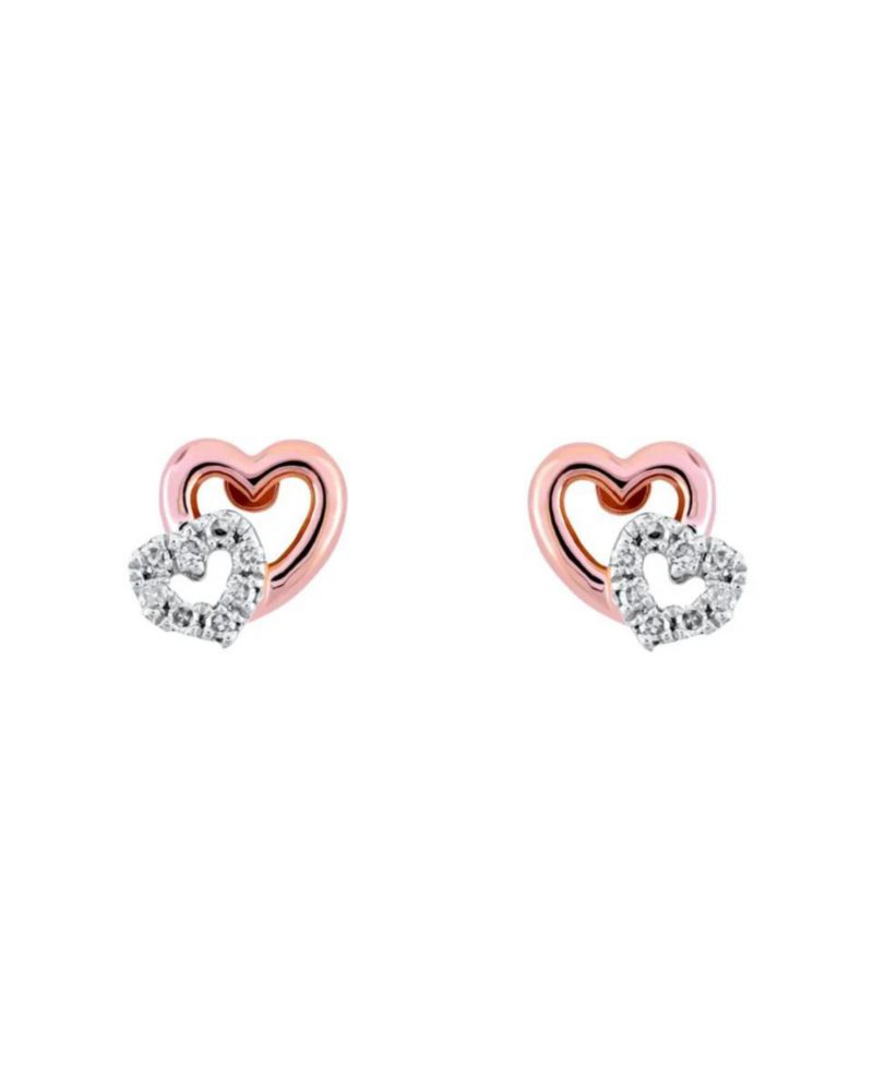 Broqueles de Oro Rosa 14K con 3 Pts de Diamante