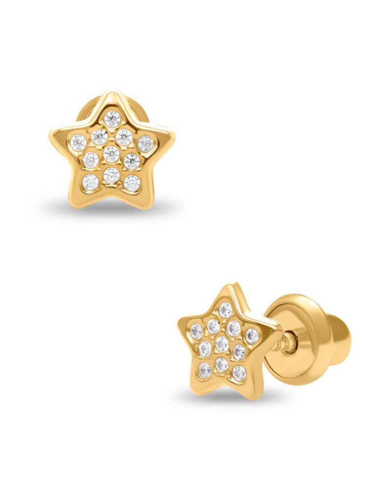 Broqueles Estrella Mini Oro Amarillo 14K Zirconias PRB-68-A