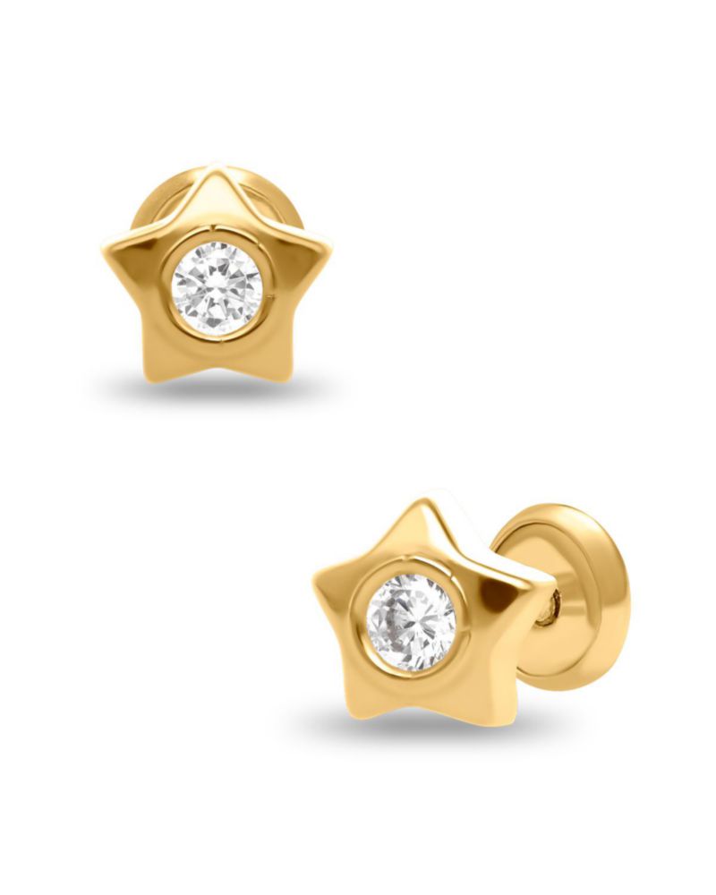 Broqueles Estrella Oro Amarillo 14K Zirconias PRB-72-A