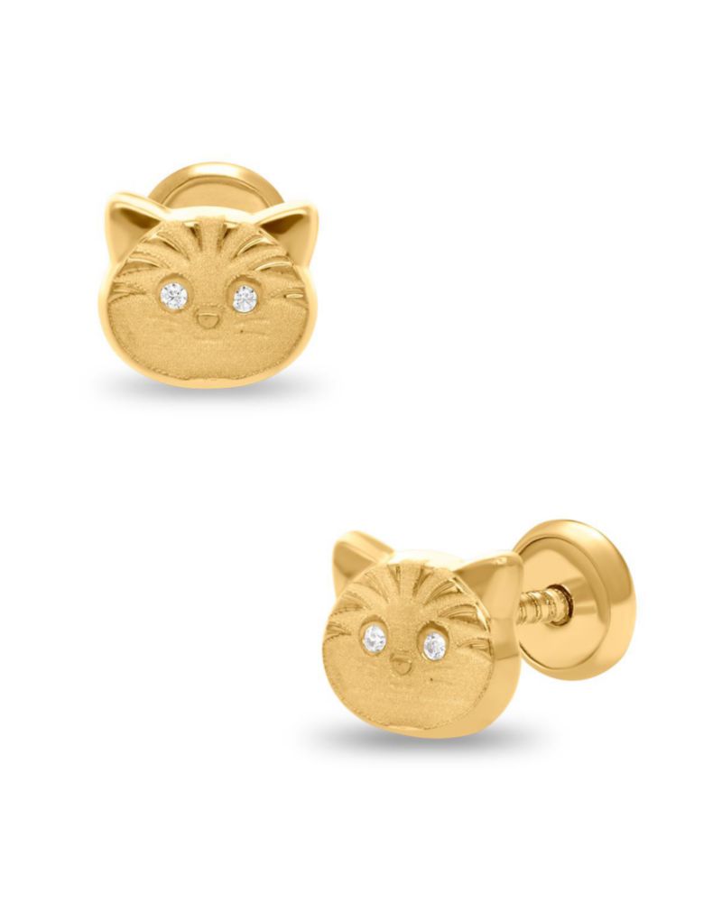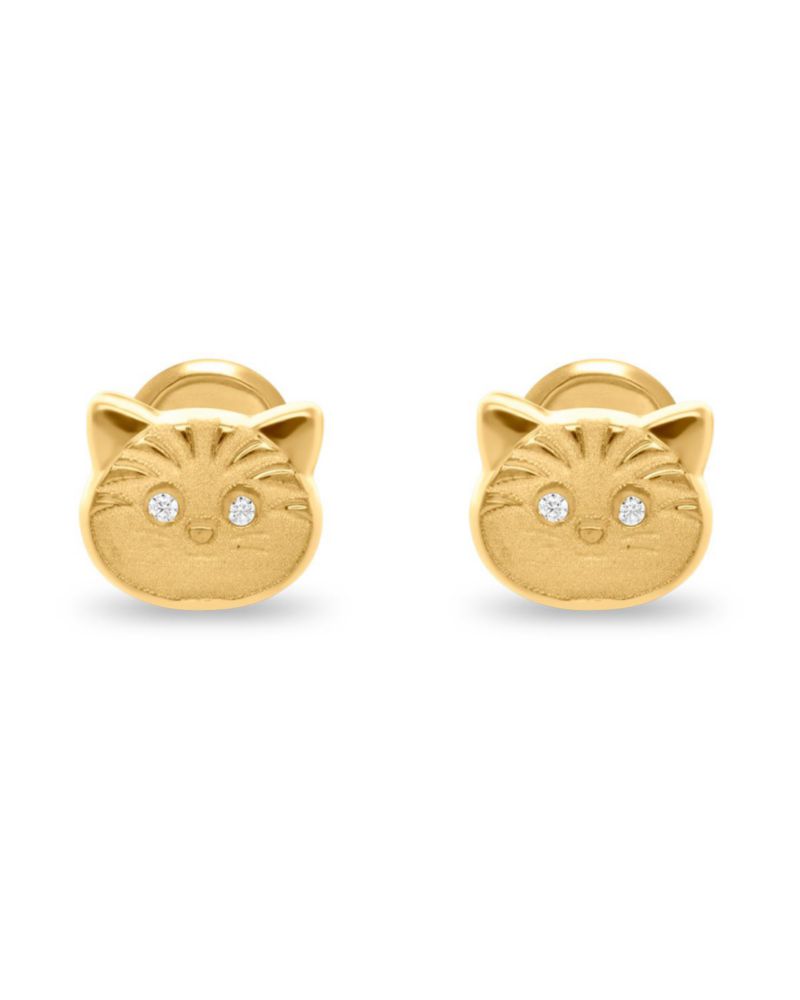 Broqueles Gatito Oro Amarillo 14K Zirconias PRB-78-A