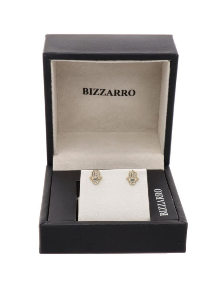 Broqueles Mano De Fatima Oro 10K Con Zirconias Y Esmalte PRB-101-A